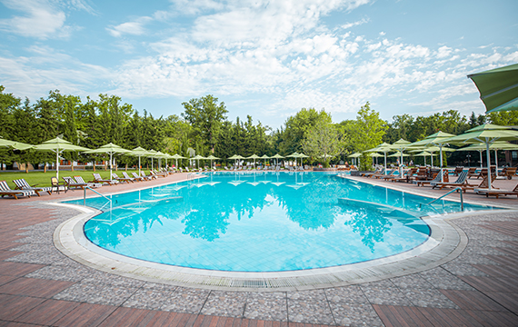 Oasis, in the center of hotel - a summer pool is available for guests to enjoy and relax.